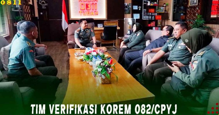 Kunjungan Tim Verifikasi yang dipimpin oleh Kasiren Korem 082/CPYJ, Letkol (K) Cba Drs. Yani Darlis, untuk memverifikasi laporan yang dibuat Kodim 0811 Tuban dalam rangka kesiapan Serah Terima Jabatan (Sertijab) Komandan Kodim 0811 Tuban.