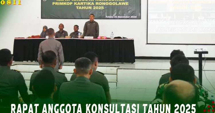 TUBAN, – Untuk bersama-sama mengevaluasi rencana kerja dan rencana belanja koperasi guna kemajuan koperasi, Primkop Kartika Ronggolawe Kodim 0811/Tuban menggelar kegiatan Rapat Anggota Konsultasi (RAK) Tahun 2025, yang di ikuti oleh seluruh Perwira staf dan jajaran danramil, Bintara, tamtama serta PNS, bertempat di Gedung Letda Sucipto Kecamatan Tuban Kabupaten Tuban, Jawa Timur. Senin, (22/12/2025).