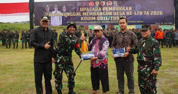 TUBAN, – Komando Distrik Militer (Kodim) 0811/Tuban resmi memulai kegiatan TNI Manunggal Membangun Desa (TMMD) ke-128 Tahun 2026. Upacara pembukaan dipimpin langsung oleh wakil Bupati Tuban, Bapak Joko Sarwono, yang bertindak sebagai Inspektur Upacara (Irup), bertempat di lapangan Watu Gajah desa Prunggahan Kulon, Kecamatan Semanding, Kabupaten Tuban, Jawa Timur, Rabu (22/04/2026).