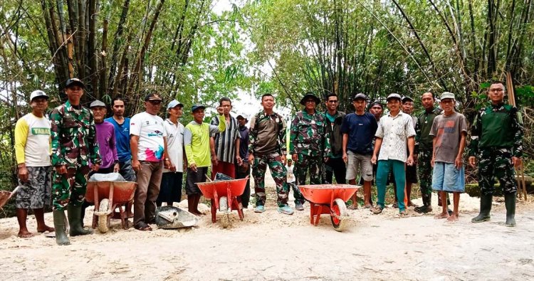 TUBAN, - Wujud nyata kepedulian TNI kepada masyarakat dalam rangka meringankan beban masyarakat dan menjadi pelopor dalam mengatasi kesulitan rakyat di sekelilingnya, Babinsa Koramil 0811/08 Widang membantu warga binaan melaksanakan karya bakti pembuatan penguat tanggul jalan untuk mencegah meluapnya air dari sungai bengawan solo di Desa Patihan, Kecamatan Widang, Kabupaten Tuban. Sabtu, (24/01/2026).