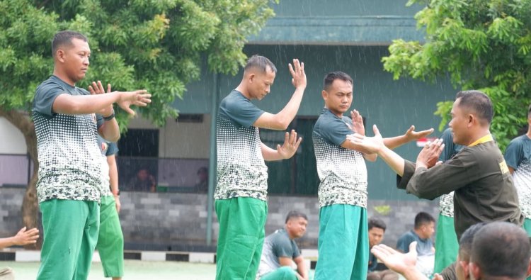 TUBAN, - Dalam rangka untuk meningkatkan kemampuan dan ketangkasan beladiri serta profesionalisme prajurit, personel Komando Distrik Militer (Kodim) 0811 Tuban melaksanakan latihan Pencak Silat Militer (PSM) secara mandiri dan rutin di lapangan Makodim setempat, Kamis (15/01/2026).