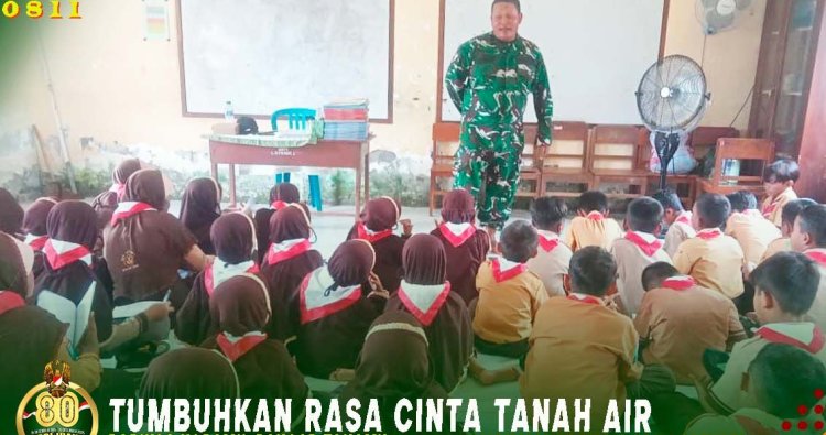 TUBAN, - Wujud kepedulian mengajarkan penanaman jiwa Nasionalisme, Babinsa Koramil 12 Bancar Kodim 0811 Tuban Peltu Son Haji memberikan materi tentang "Penanaman Jiwa Nasionalisme" anak Sekolah Dasar di UPT SDN Latsari 1 Kecamatan Bancar, Kabupaten Tuban, Jawa Timur. Kamis (18/12/2025).